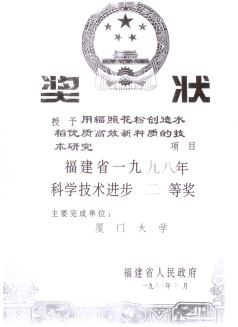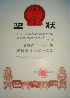 厦门大学水稻育种组部分获奖情况展示