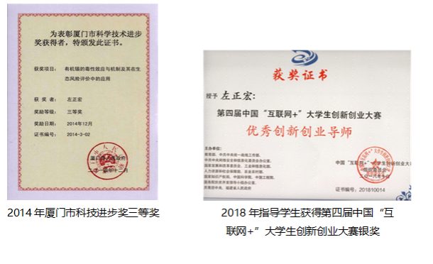 团队先后承担了国家基金委及海洋863项目、海洋公益项目、福建省重大科技项目等课题研究,在Environ Health Perspect,Environ Sci Technol,Small,Small Methods, Theranostics, J Hazard Mater等杂志发表论文200多篇,研究成果先后获上海市科学技术进步奖一等奖、国家科学技术进步奖二等奖、厦门市科学技术进步奖三等奖。组内学生荣获全国大学生自强之星、2018年“创青春”福建省大学生创业大赛金奖、第四届全国“互联网+”大学生创新创业大赛银奖、全国大学生生命科学竞赛一等奖等荣誉。