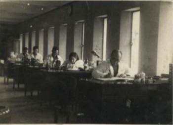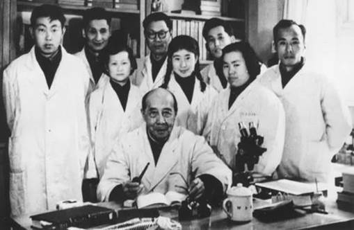 1954年水生所形态组,右起依次为秉志、鲍璿、陈进生、项家秋、潘星光