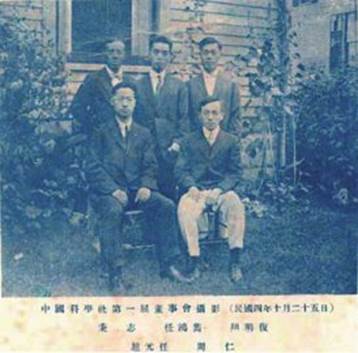 1915年10月25日,中国科学社第一届董事会成员合影。前排左起:赵元仁、周仁,后排左起:秉志、任鸿隽、赵明复