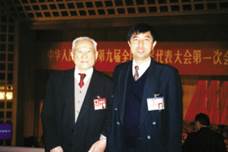 曾呈奎(左)与中国科学院海洋研究所所长相建海在九届全国人大一次会议上合影
