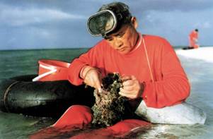 1944年曾呈奎在美国加利福尼亚近海潜水海底做石花菜生长实验