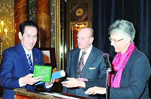 菲利普亲王向陈宜瑜(左一)颁发证书和金质奖章
